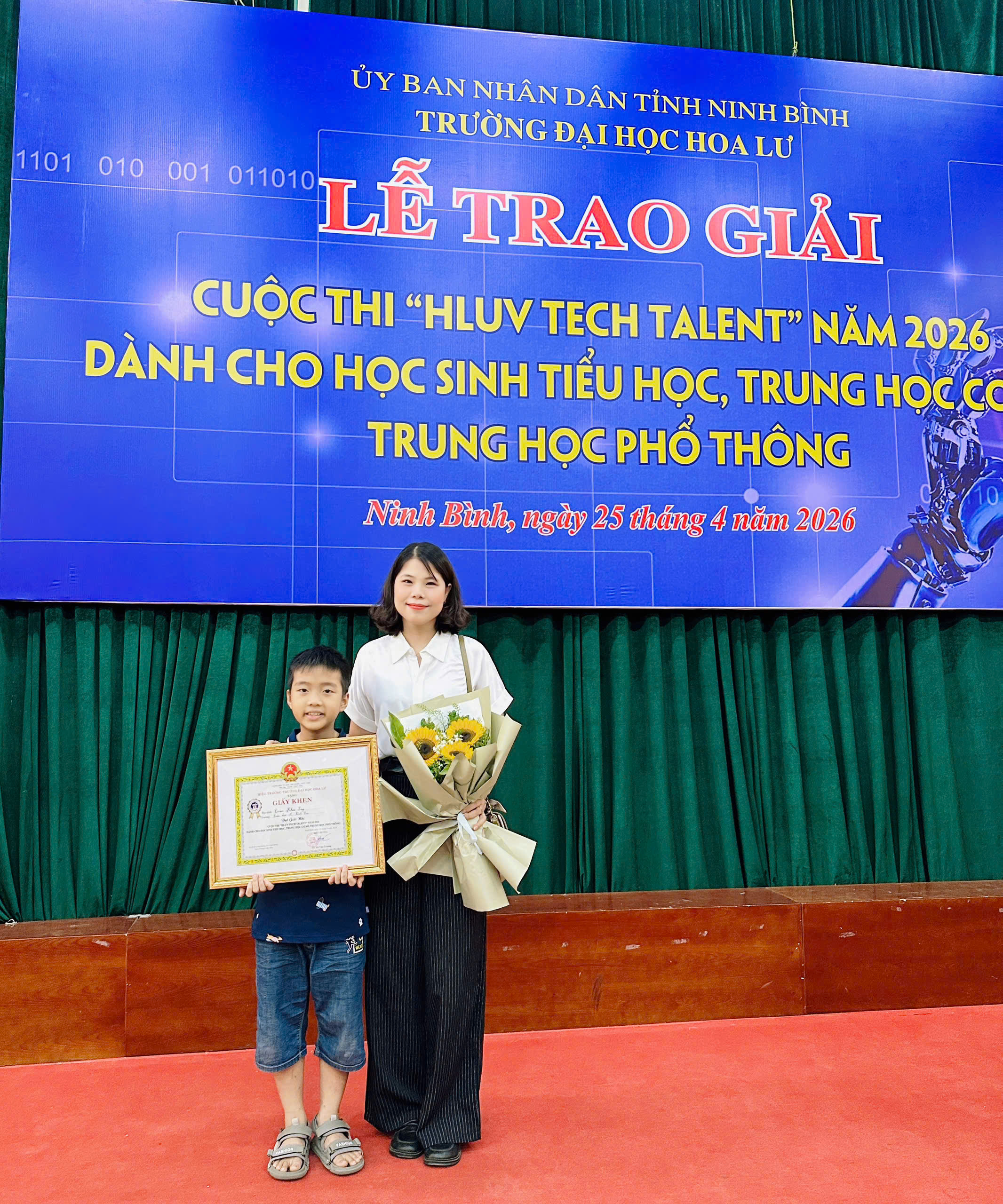 Học sinh trường tiểu học A Vĩnh Trụ đạt giải Nhì tại cuộc thi “Hluv Tech Talent” năm 2026.